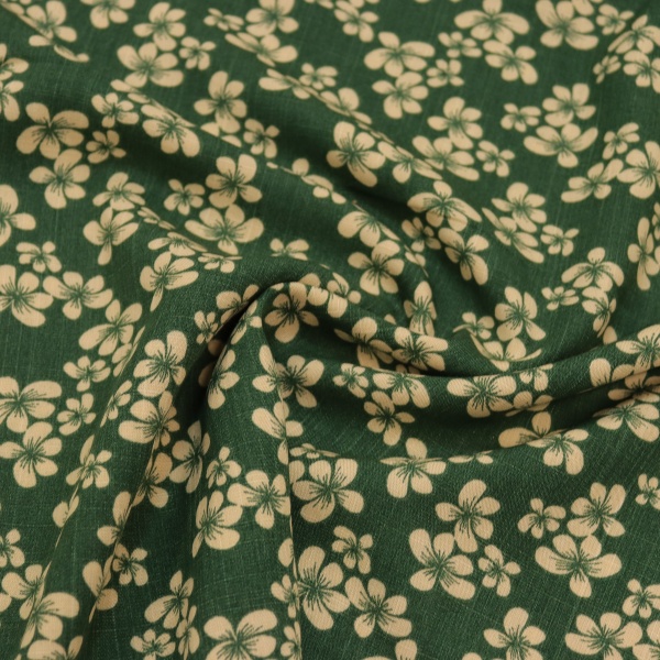 Viscose Slub: Viscose com trama de linho. A Viscose muito conhecida como a "seda artificial" é o resultado da extração de fibras da celulose inicialmente natural para depois ser transformada em fibra têxtil artificial. É um tipo de tecido flexível que se adapta em vários tipos de corpos, para você que gosta de saias, vestidos, camisas, calças e kimonos, a viscose está presente em diversas peças e indicada para vários estilos.